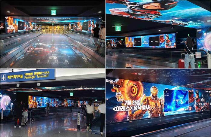 '아레스'는 인천공항 제1 여객터미널 AMT(아트 미디어 터널)을 가득 채웠다. 해당 위치는 인천국제공항과 교통센터를 연결하는 초대형 DOOH(디지털 옥외광고)로 수많은 국내외 여행객들이 왕래하는 핵심 장소다.