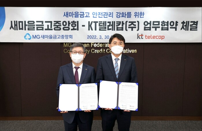 새마을금고중앙회(회장 박차훈)은 보안전문기업 KT텔레캅(대표이사 장지호)과 새마을금고 내 안전관리 강화를 위한 업무협약(MOU)을 체결했다고 31일 밝혔다.