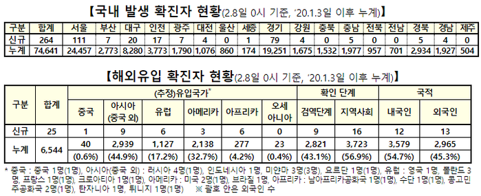 신규 확진자 289명을 감염경로별로 보면 국내발생(지역발생)이 264명이었고, 해외유입 발생자는 25명이다. 지역발생 확진자는 지난 2일(295명) 이후 6일만에 200명대로 다시 내려왔다.