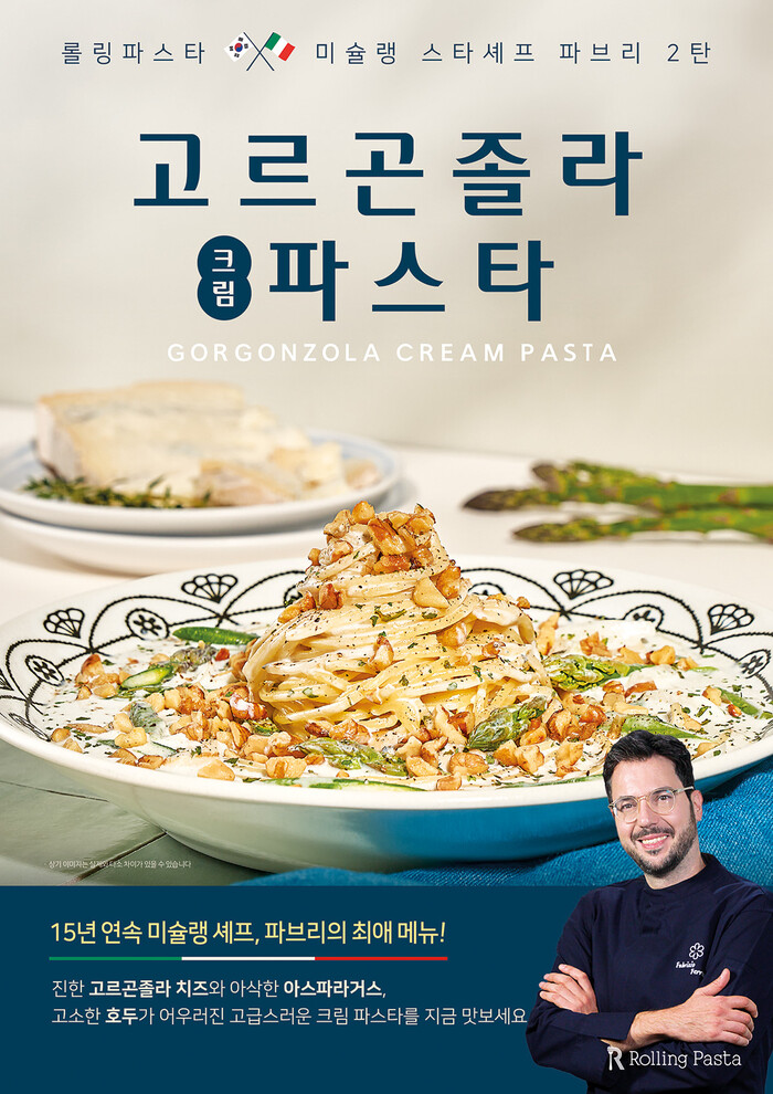 [메가경제=주영래 기자]더본코리아의 파스타 전문 브랜드 롤링파스타(대표 백종원)가 미슐랭 스타 셰프 파브리치오 페라리(이하 ‘파브리’)와 손잡고 이탈리아 정통 치즈의 풍미를 강조한 ‘고르곤졸라 크림파스타’를 새롭게 선보인다고 밝혔다.