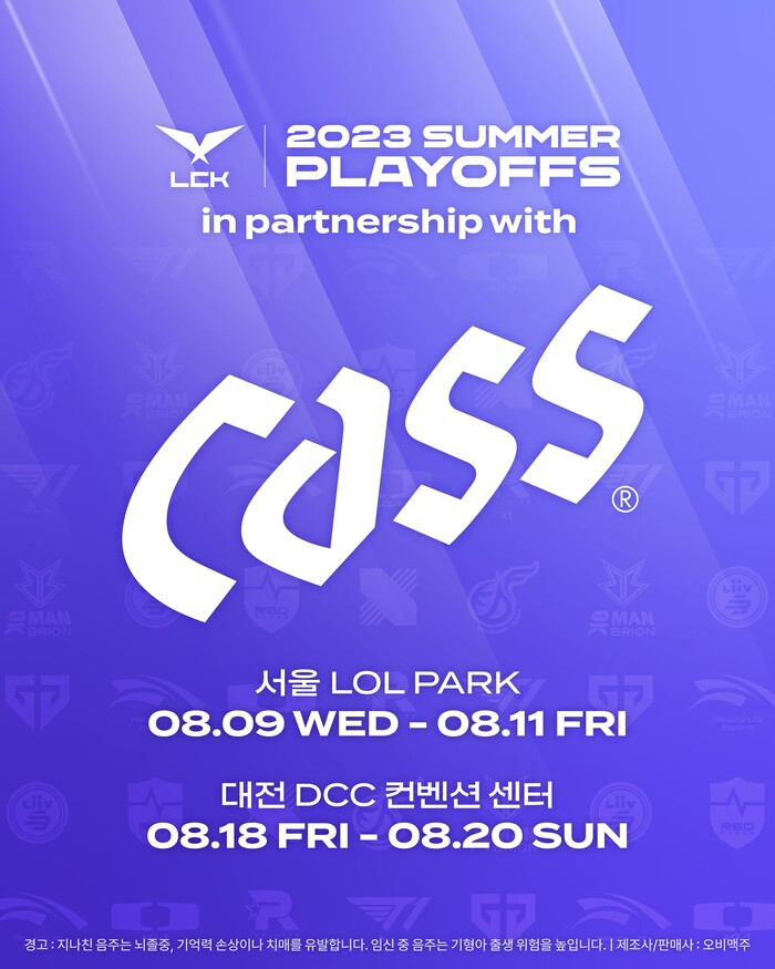 카스는 플레이오프 기간 내 '카스 X LCK' 응원 서포터즈를 선정할 계획이다. 서포터즈로 선정된 관람객들에게는 2023 LCK 서머 파이널 직관 기회와 함께 응원 용품을 담은 웰컴키트, 당일 왕복 셔틀버스 서비스 등 다양한 혜택을 제공한다.