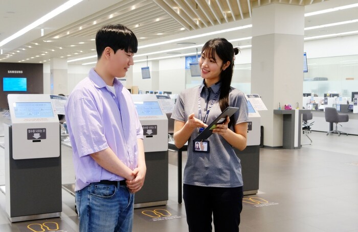 ▲ 삼성전자서비스 엔지니어의 휴대폰 상담 모습. [사진=삼성전자서비스] |