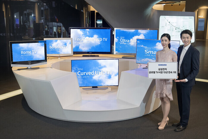 ▲ 삼성전자 모델이 경기도 수원에 위치한 삼성 이노베이션 뮤지엄에서 삼성 TV의 15년 연속 1위 달성 성과를 소개하고 있다. [사진=삼성전자 제공] |