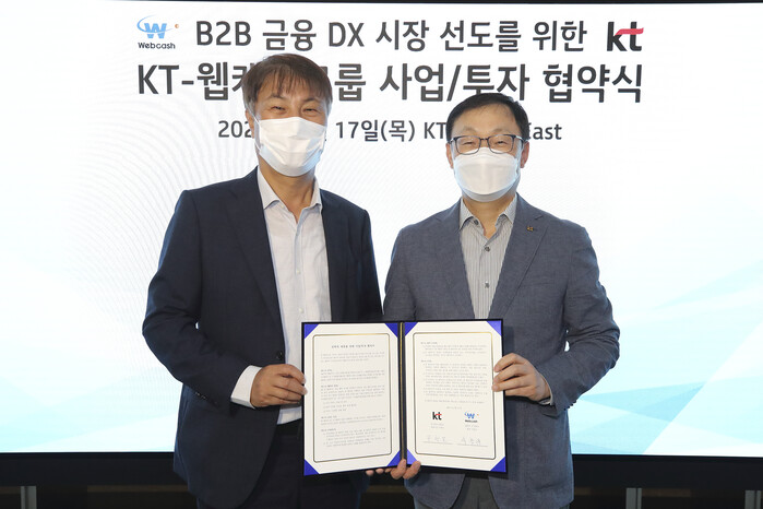 KT(대표 구현모)는 웹케시그룹과 전략적 지분투자 및 B2B 금융 사업 협력 계약을 체결했다고 17일 밝혔다.