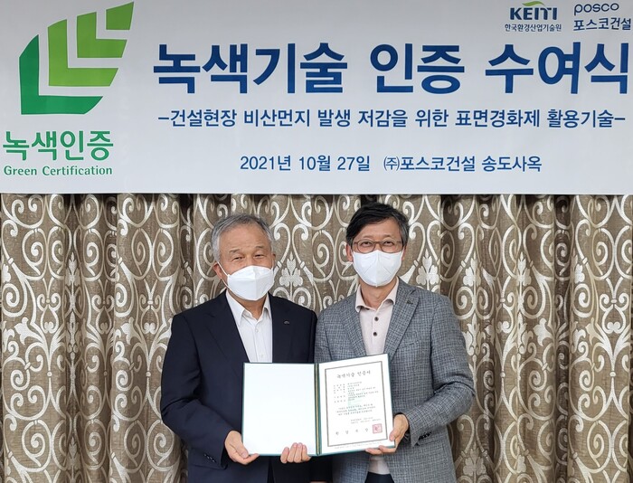 | ▲ 포스코건설이 비산먼지 발생 저감기술에 대해 환경부로부터 녹색기술 인증을 받았다 [사진=포스코건설 제공] |