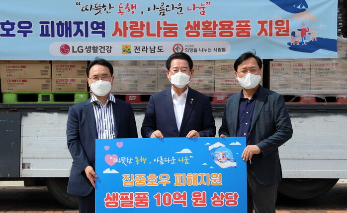 LG생활건강 정경식 대외업무부문장은 “집중호우 피해로 실의에 빠진 전남도민에게 도움이 되고자 그룹 차원에서 지원하게 됐다”면서 “전남에 도움이 되는 사회공헌 사업을 지속 추진하겠다”고 밝혔다.