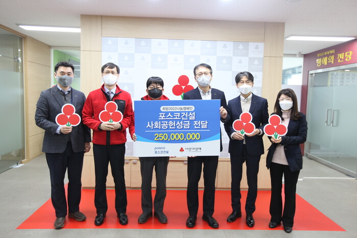 포스코건설은 지난 20일 인천사회복지공동모금회에 2억 5000만 원의 성금을 전달했다고 24일 밝혔다.
