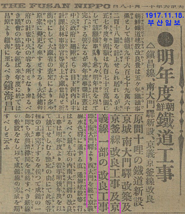 본래 경성~의주 간 경의선은 1896년 프랑스 휘브릴사가 특허 후 3년 내 착공하지 못해 대한철도회사를 거쳐 서북철도국이 1902년 5월 8일 한성~송도 간 기공식까지 마쳤으나 1904년 러일전쟁을 시작한 일제가 용산에 군사령부를 설치했다.