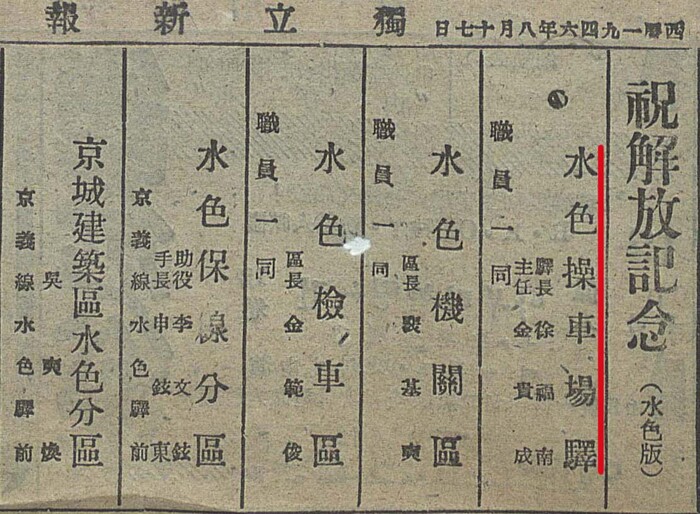 | ▲.1946년 08월17일자 독립신보에 기록된 수색조차장역 |