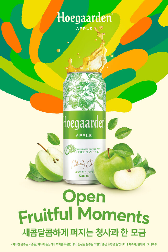 오비맥주에 따르면 이번 신제품은 부드럽고 풍부한 호가든 고유의 밀맥주 풍미에 청사과의 새콤달콤한 맛을 더한 것이 특징이다.