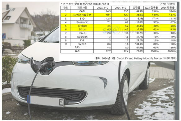 시장조사기관 SNE리서치에 따르면, 올해 3월 기준 글로벌 배터리 사용량 10위권에 중국 기업들이 6개나 진입했다. 특히 CATL은 38.4%의 시장 점유율을 기록하며 한국 3사(LG에너지솔루션 13.7%, SK온 4.5%, 삼성SDI 5.6%)를 합친 점유율(23.8%)을 웃돌았다. 중국 업체 SVOLT 또한 184.3% 성장하며 1.8% 점유율로 10위를 차지했다.