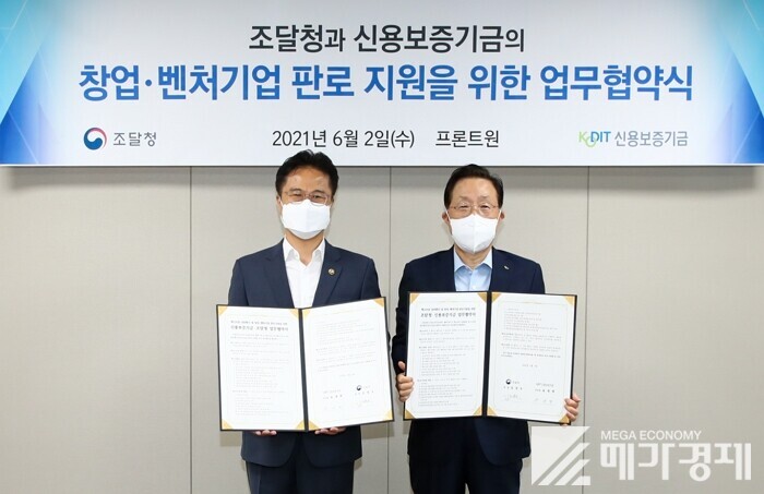 신용보증기금(이사장 윤대희)은 조달청(청장 김정우)과 함께 2일 서울 마포구 소재 프로트원에서 ‘혁신조달 성과확산 및 창업·벤처기업 판로 지원을 위한 업무협약’을 체결했다고 밝혔다.