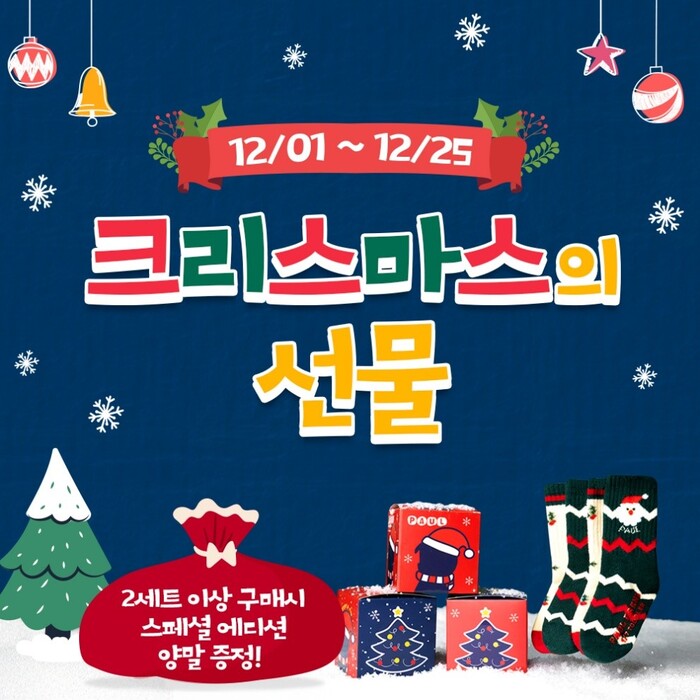 행사 기간 동안 2세트 이상 구매한 고객에게는 크리스마스 분위기를 담아 한정 제작된 ‘스페셜 에디션 양말’을 사은품으로 증정한다. 시즌 콘셉트를 담은 특별 구성으로 선물 활용도 또한 높다.