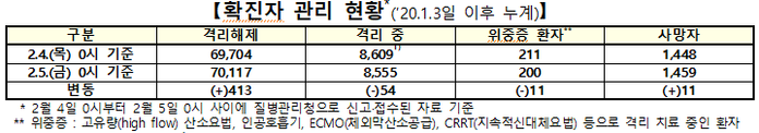 ▲ 5일 0시 기준 코로나19 확진자 관리 현황. [출처= 중앙방역대책본부] |