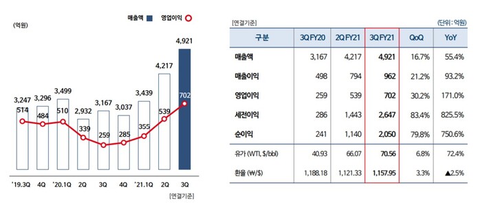 특히, 3분기만 놓고 보면 매출 4921억원, 영업이익 702억원을 기록하며, 전년동기대비 각각 55.4%, 171.0% 증가한 어닝서프라이즈를 기록했다.