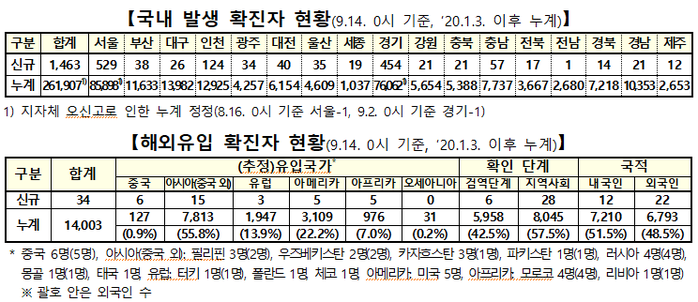 ▲ 14일 0시 기준 코로나19 국내발생(지역발생) 및 해외유입 확진자 현황. [출처=중앙방역대책본부] |