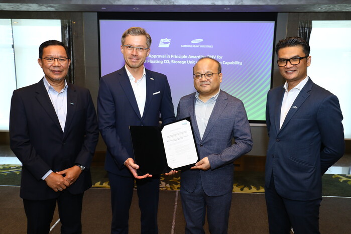 [메가경제=정진성 기자] 삼성중공업은 말레이시아 현지시간 30일 쿠알라룸푸르에서 노르웨이 선급인 DNV로부터 '부유식 이산화탄소 저장·주입 설비(FCSU)'에 대한 기본 인증을 받았다고 31일 밝혔다.