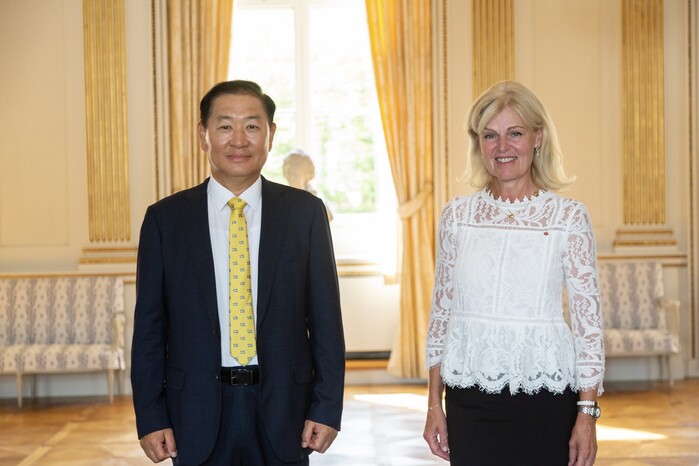 한종희 부회장은 지난 15일(현지시간) 스웨덴 스톡홀름의 외교부 청사에서 안나 할베리 외교부 통상장관을 접견했다.