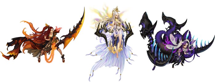 ▲ (왼쪽부터) 세컨드임팩트 영웅 ‘바냐’, ‘엘 가이아’, ‘폰 리퍼’ [게임빌 제공] |