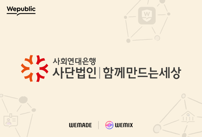 [메가경제=이준 기자] 위믹스 재단이 사단법인 ‘함께만드는세상(사회연대은행)’과 블록체인 기반 투명 후원 생태계 구축을 위한 업무 협약을 체결했다. 함께만드는세상(사회연대은행)은 위믹스 기반 투명 사회 플랫폼 위퍼블릭(Wepublic)에 합류할 예정이다.