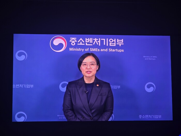| ▲한성숙 중기벤처기업부 장관이 20일 서울 서초구 삼성전자 서울 연구개발(R&D)캠퍼스에서 진행된 '2025 C랩 스타트업 데모데이'를 통해 축사를 전하고 있다. [사진=메가경제] |
