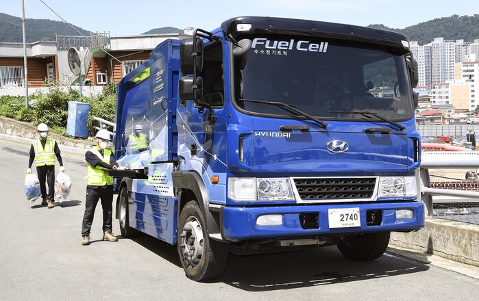 현대차그룹은 주거지에서 주로 운행하는 청소트럭에 수소연료전지 기술을 적용하면 배출가스를 아예 없앨 수 있고 소음 감소 효과도 높을 것이라는 발상으로 수소청소트럭을 개발했다.
