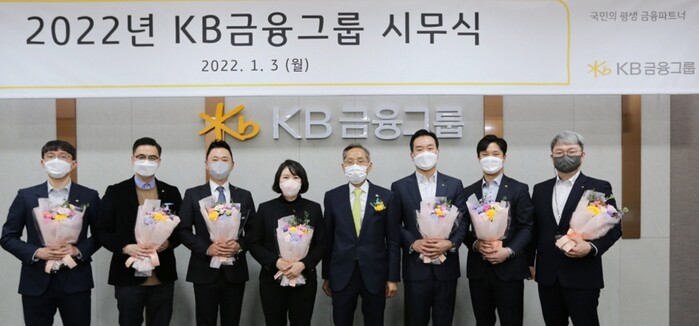 KB금융그룹(회장 윤종규)은 3일 여의도본점 신관에서 임인년 새해를 맞아 온라인 생중계 방식의 ‘2022년 시무식’을 개최했다.
