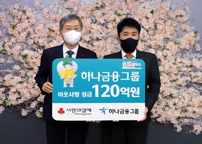 나눔을 통한 더 행복한 금융을 실천하기 위해 하나금융그룹이 연말 이웃돕기 성금 120억원을 사회복지공동모금회에 전달했다. 하나금융은 장기화되는 코로나19 극복과 일상회복 지원을 위한 사회적 백신의 역할을 수행코자 그룹의 15개 관계사가 뜻을 모아 지난해 100억원 대비 20억원 늘어난 120억원의 이웃돕기 성금을 전달하며 그 의미를 더했다.