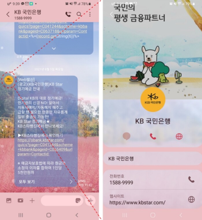 KB국민은행은 보이스피싱 사기 피해 예방을 위해 지난 6월 은행권 최초로 문자 메시지에서 은행 로고 정보를 확인할 수 있는 RCS(Rich Communication Service) 기반 문자 서비스를 도입했다.