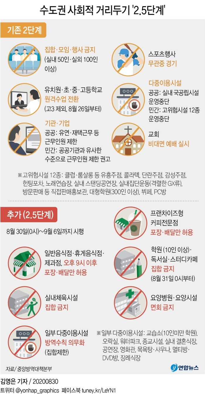 ▲ 수도권 사회적 거리두기 2.5단계.[그래픽= 연합뉴스] |