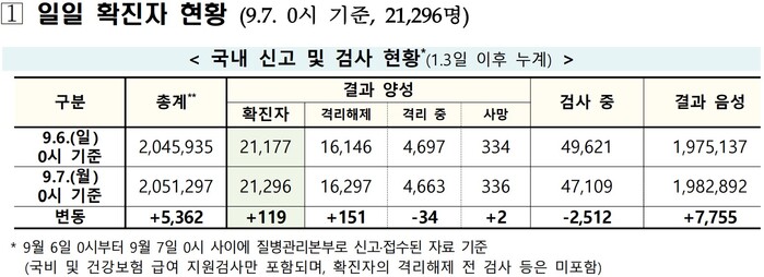 이로써 지금까지 총 누적 확진자 수는 2만1296명을 기록했다.