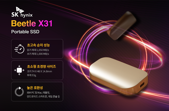 [메가경제=이준 기자] SK하이닉스가 지난 5월 일반 소비자용 포터블 SSD 제품 ‘비틀 X31’(이하 X31)을 국내 시장에 5일 공개했다.