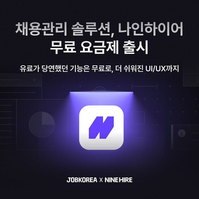 [메가경제=정호 기자] 잡코리아 채용 관리 솔루션 나인하이어가 국내 최초로 무료 요금제 '비즈니스 플랜'을 15일 정식 출시했다고 밝혔다.