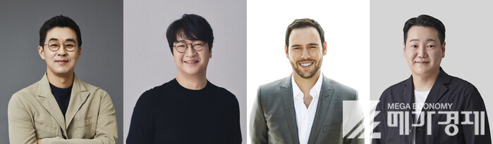 | ▲ (좌측부터) 박지원 하이브 대표이사, 윤석준 하이브 아메리카 CEO, 스쿠터 브라운 하이브 아메리카 CEO, 한현록 하이브 재팬 CEO [사진=하이브 제공] |