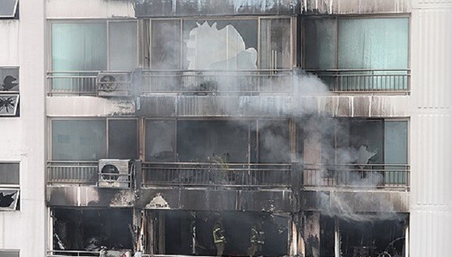 소방은 화재가 발생한 14층에는 스프링클러가 설치돼 있지 않았다고 밝혔다.