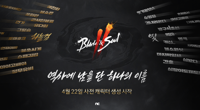[메가경제=이석호 기자] 엔씨소프트(대표 김택진, 이하 엔씨)의 신작 MMORPG(다중접속역할수행게임) ‘블레이드&소울 2(이하 블소2)’가 내달 22일 사전 캐릭터 생성을 시작한다고 30일 밝혔다.
