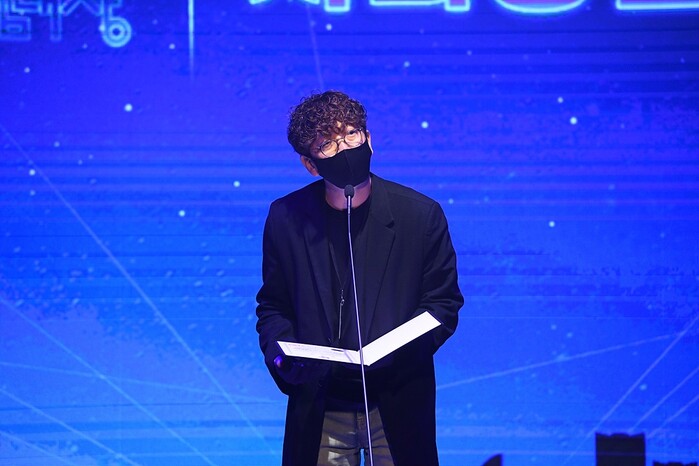 | ▲ 수상을 위해 무대에 오른 권익훈 스마일게이트 메가포트 본부장 [사진=스마일게이트 제공] |