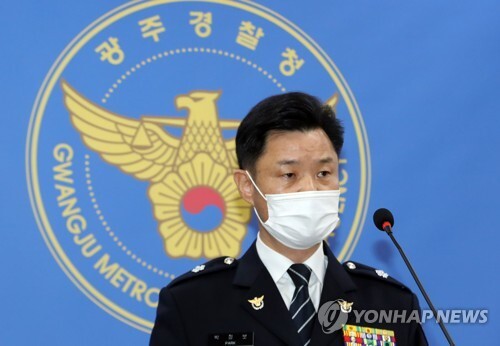 ▲ 11일 오전 광주경찰청에서 철거 건물 붕괴·매몰 사고와 관련 박정보 수사본부장이 현재까지 수사 상황을 브리핑하고 있다. [광주=연합뉴스] |