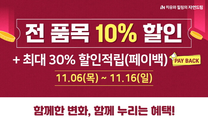 [메가경제=양대선 기자] 자연드림이 오는 16일까지 전국 매장과 온라인몰에서 전 품목 10% 할인과 함께 최대 30% 할인적립(페이백)을 제공하는 특별 이벤트를 진행한다고 7일 밝혔다.