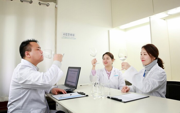 코웨이는 전문 연구 인력을 기반으로 물맛에 영향을 주는 주요 인자를 도출하고 전문기관과 공동연구를 통해 물맛을 검증하고 객관적 근거를 확보해 맛있는 물에 대한 기준을 수립하고 있다.
