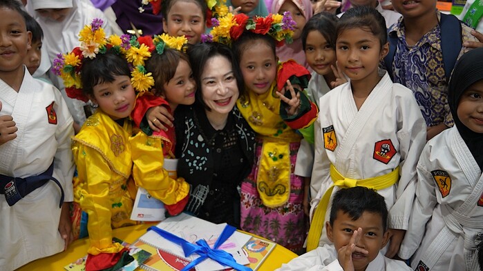 ▲ 장혜선 이사장이 해외 소외계층 아동 지원사업 현장을 방문했다. [사진=롯데재단] |