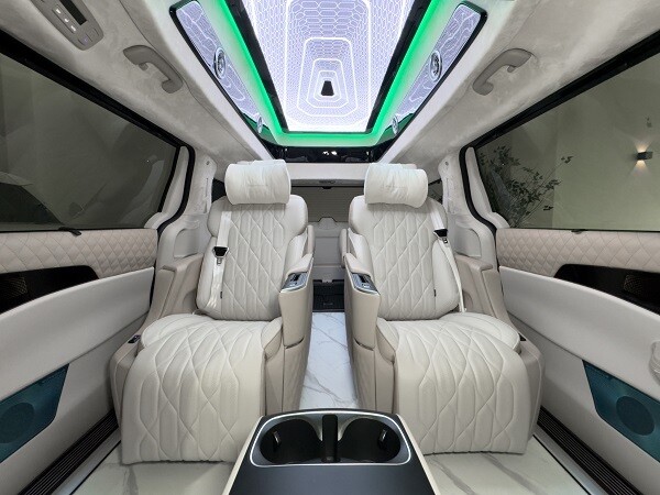 가격 측면에서도 경쟁력을 갖췄다. 판매 가격은 가솔린 모델 6980만 원, 하이브리드 모델 7435만 원으로 책정됐으며, 사업자의 경우 부가세 환급 시 가솔린 모델을 6282만 원에 구매할 수 있다. 이 가격에는 29인치 스마트TV와 도트형 LED, 엠비언트 라이트를 포함한 하이루프 패키지를 비롯해 실내 전체 프리미엄 가죽 트리밍, 대리석 바닥재, 천장·바닥 3중 방음재 등 주요 특장 옵션이 모두 포함됐다.