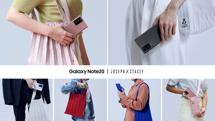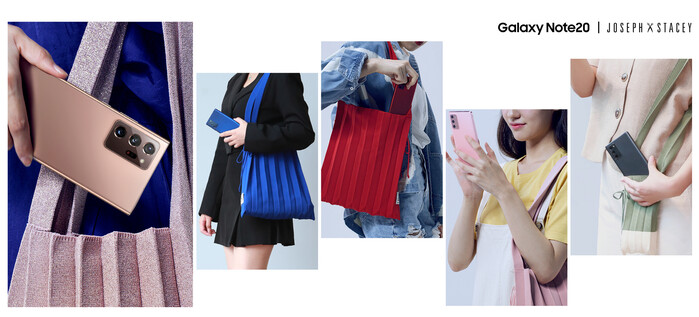 삼성전자와 조셉앤스테이시는 갤럭시 노트20를 더욱 멋지게 가지고 다닐 수 있는 전용 가방도 선보인다. 조셉앤스테이시만의 아이코닉한 디자인과 비비드한 컬러 감성의 '플리츠 니트백'을 전에 없던 휴대폰 전용 사이즈로 제작하고 갤럭시 노트20의 미스틱 컬러에서 영감 받은 색상을 더했다.