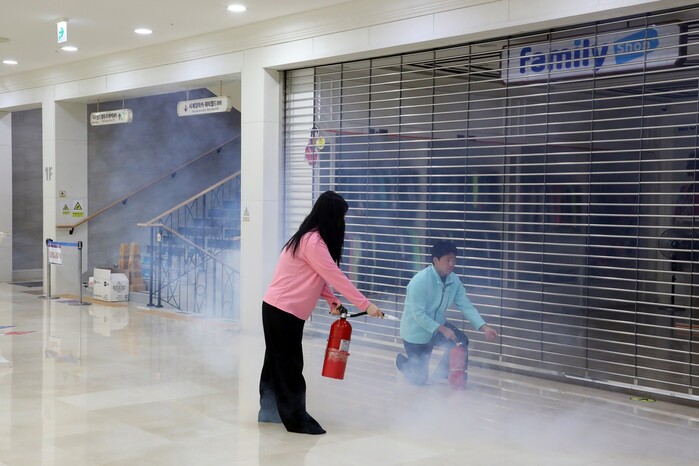 이번 훈련에는 강원랜드와 협력업체 임직원, 사북119안전센터가 참여했으며, 실내 화재 상황을 가정해 초기 진압부터 고객 대피 유도, 환자 구급활동, 주요 자산 보호까지 실제 대응 절차에 따라 단계적으로 진행됐다.