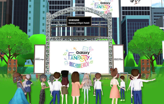 삼성전자는 처음으로 메타버스 플랫폼에서 갤럭시 팬파티 '폴더블데이'를 27일 저녁 8시에 진행한다. 사전 초청된 갤럭시 팬 1000명이 참여하며 일러스트레이터 '키크니', 피식대학의 '카페사장 최준', 고상우·이은호·정재환 작가 등이 출연할 예정이다.