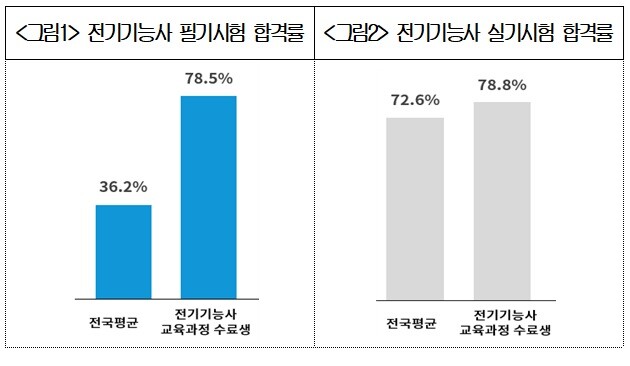 이런 세심한 지원은 합격률로 증명되고 있다. 2025년 기준 수료생의 전기기능사 필기 합격률은 78.5%를 기록해 전국 평균(36.2%) 대비 2배 이상 높은 성과를 거뒀다.