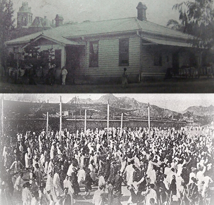 | ▲사진(上) 당시 서대문역, 사진(下) 3.1 만세운동 모습 |