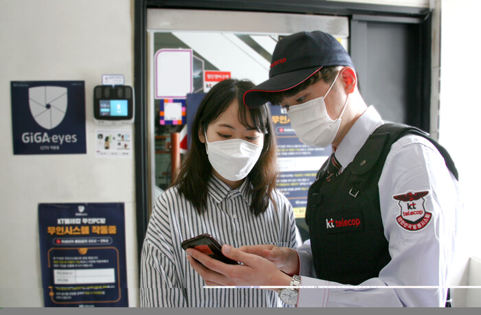 | ▲ KT텔레캅 보안요원이 고객에게 무인PC방 사용방법을 설명하고 있다. [사진=KT텔레캅 제공] |