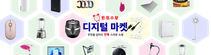디지털 마켓은 매월 셋째 주 주말 디지털 기기·가전·액세서리 등을 모아 선착순 특가 판매하는 특별 기획 매장이다. '추천 상품' 코너에서는 MD가 엄선한 인기 아이템 4가지를 한정 수량 및 초특가로 만나볼 수 있다. 기획전 특별 쿠폰을 준비해 최대 20% 할인 혜택도 전한다.