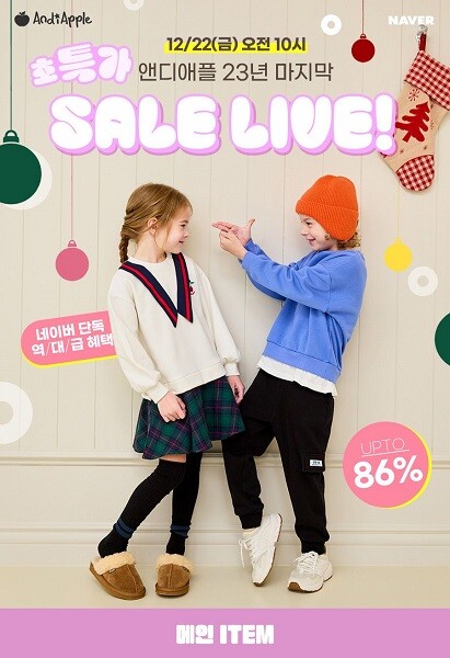 [메가경제=정진성 기자] 키즈 패션 브랜드 앤디애플이 오늘 오전 10시부터 11시까지 23년 마지막 특가 쇼핑라이브를 진행한다고 밝혔다.